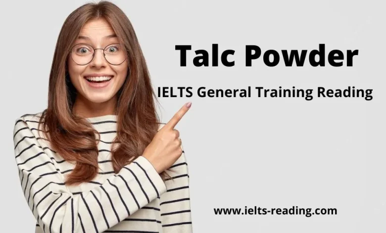Talc Powder is a common topic in IELTS General Training Reading practice, often found in Section 1 or 2 where factual and descriptive texts are tested. These passages usually present product descriptions, health considerations, or industrial uses of talc powder.